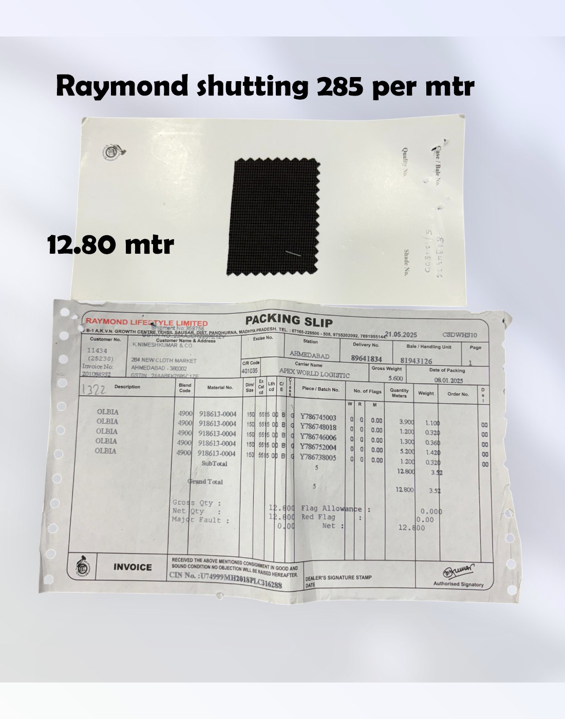 Raymond pure giza cotton shirting 235