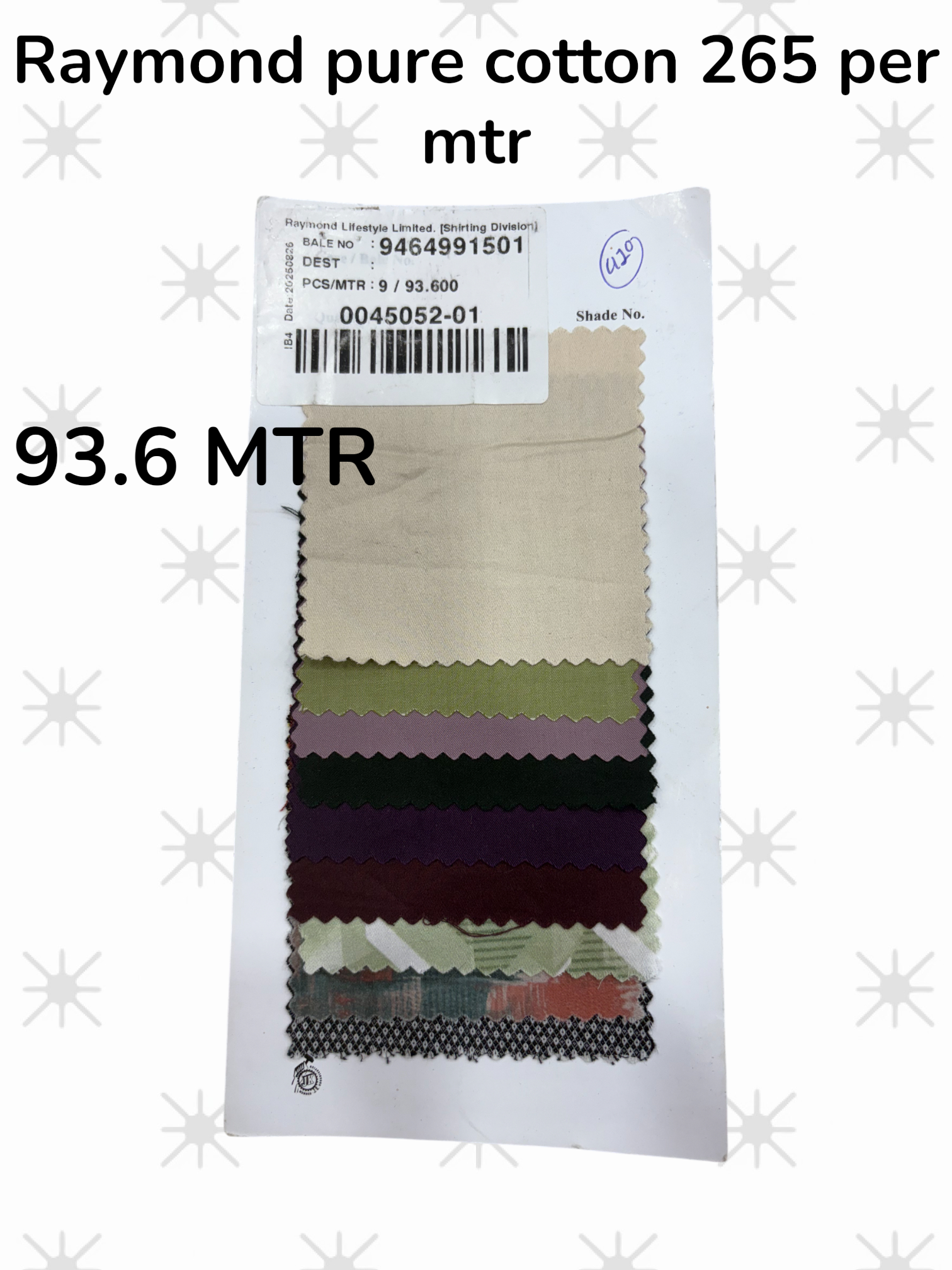 Raymond pure cotton shirting 265 Fabric is one of the finest fabric for luxurious Shiritng for men.It is a Great Export Qualiy product.
