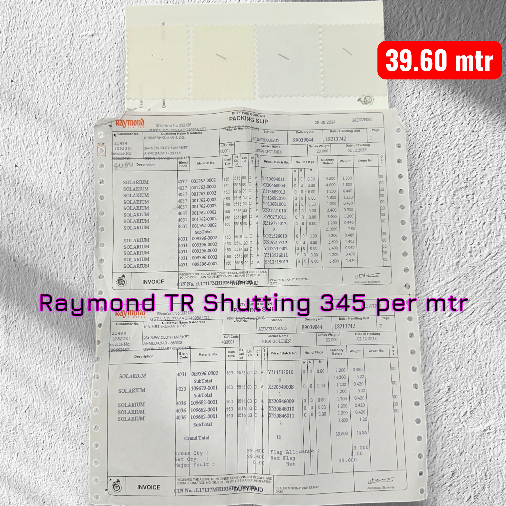 Raymond pure TR Suiting 345 per mtr Fabric is one of the finest fabric for luxurious Suiting for men.It is a Great Export Qualiy product.