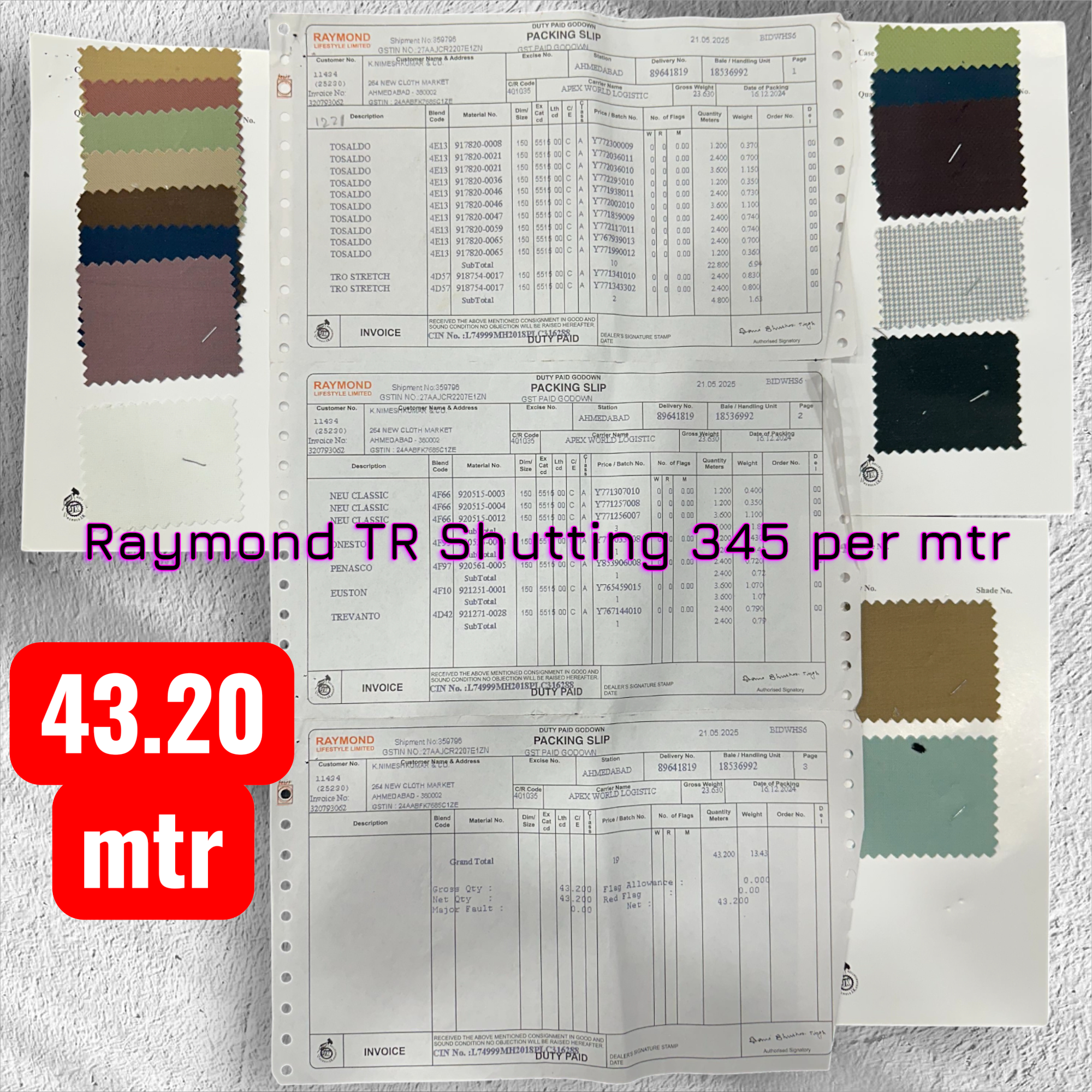 Raymond pure TR Suiting 345 per mtr Fabric is one of the finest fabric for luxurious Suiting for men.It is a Great Export Qualiy product.