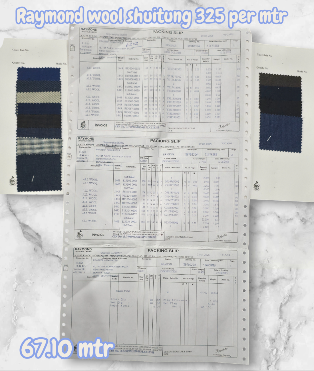 Raymond wool Shutting 325 per mtr Fabric is one of the finest fabric for luxurious Suiting for men.It is a Great Export Qualiy product.